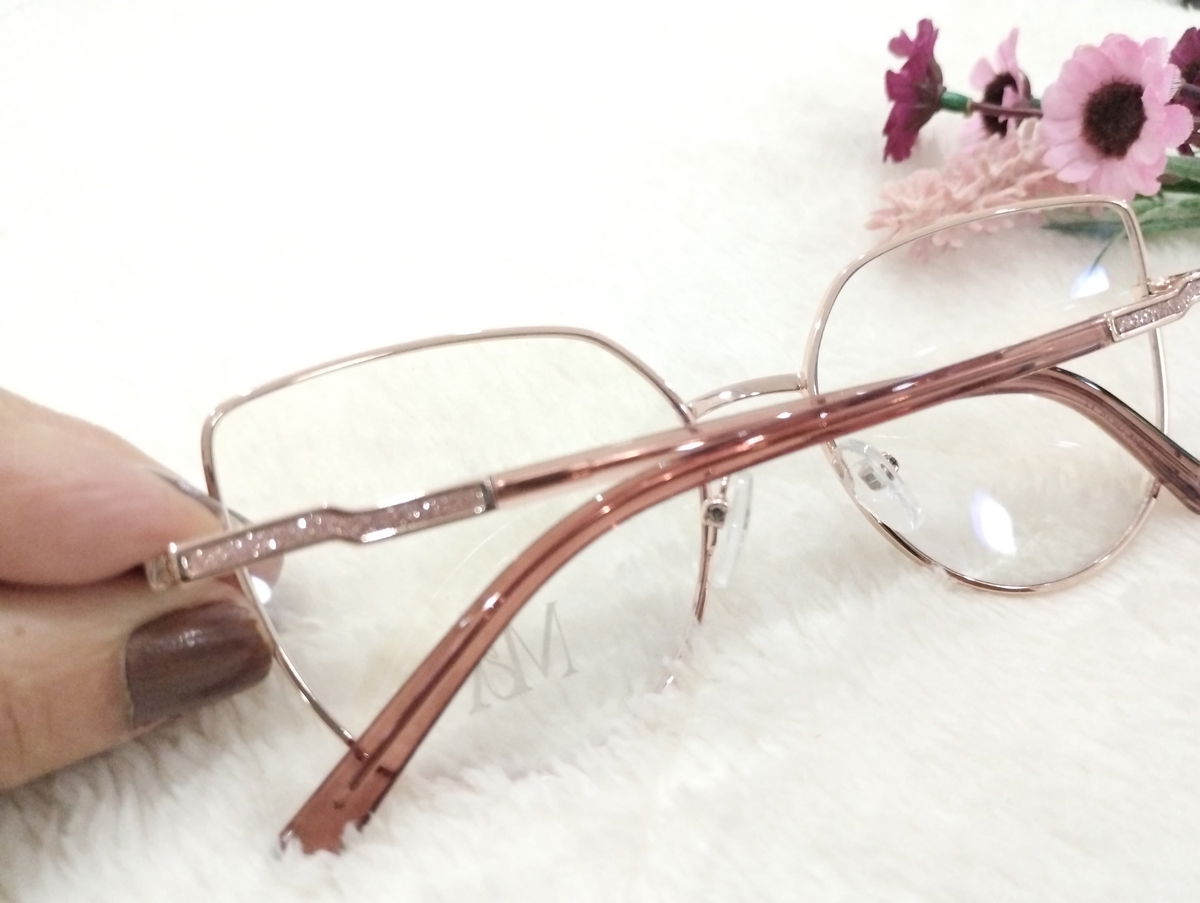 ARMAZÓN DE DAMA DE DISEÑO DE METAL CON PATILLAS FLEXIBLES CON DETALLES DE BRILLOS